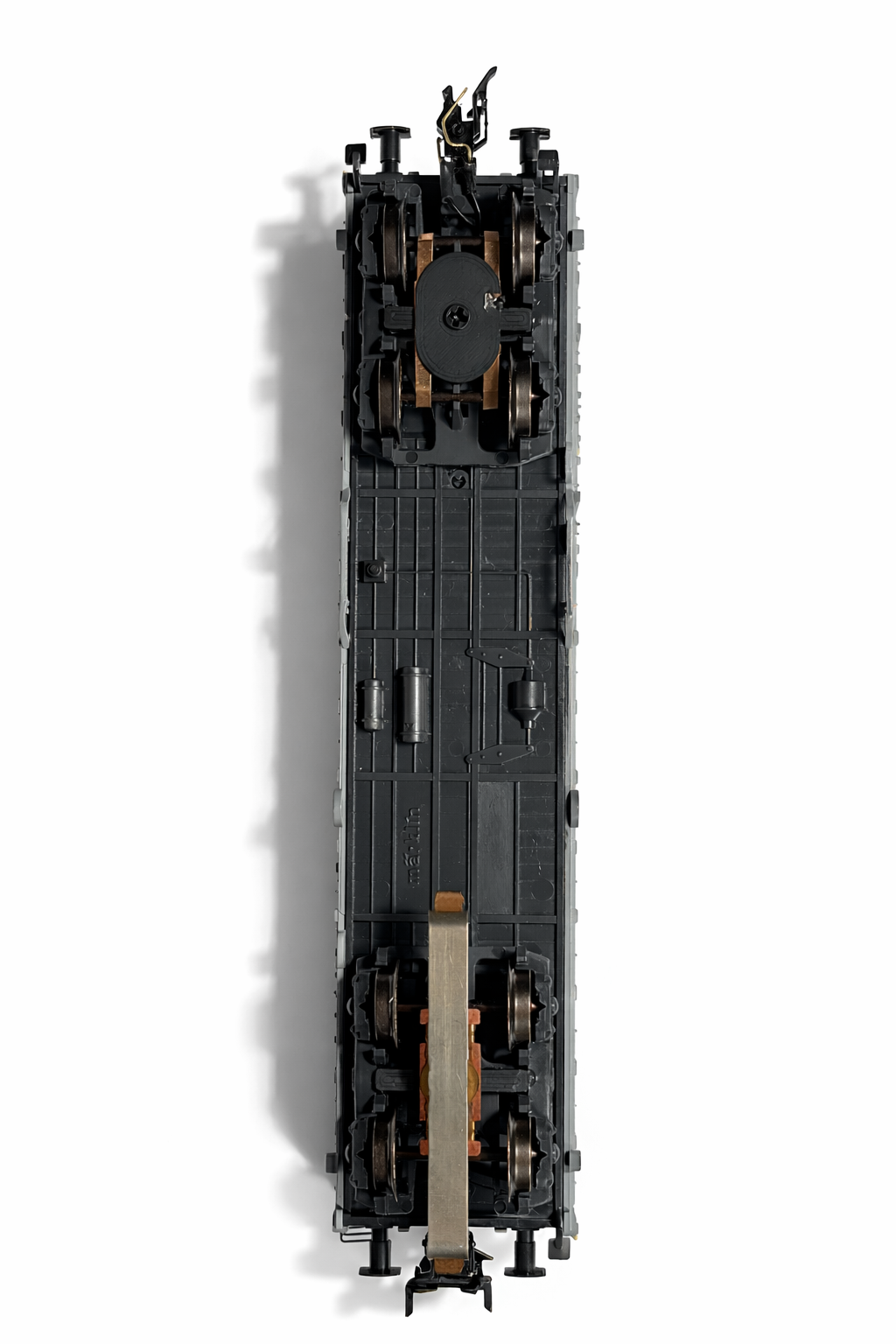 Bei der Ausrüstung des „Kraftwagens“ sollte man den Schleifer abweichend von der Position in der Lok am hinteren Drehgestell anbauen (und das Masseblech am vorderen Drehgestell), um so den Abstand der Schleifer zwischen Lok und Kraftwagen zu maximieren.
